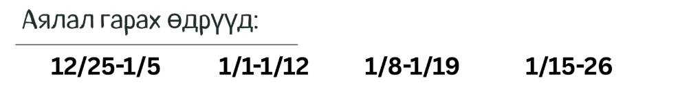 - Хөтөлбөрт багтаагүй, үзвэр үйлчилгээ: Нэмэлт төлбөрөөр танд зориулан үйлчилнэ.