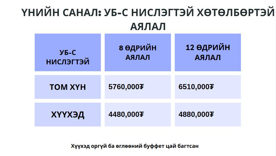 УБ-С НИСЛЭГТЭЙ БАЛИ АЯЛЛЫН ХӨТӨЛБӨР 12 ӨДӨР